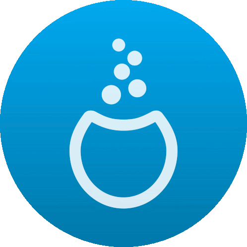 a blue circle with a white circle with bubbles on it