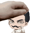 A cartoon character, the Schmidt Orb, with a mustache and hat, is gently touched by a hand in this animated sticker.