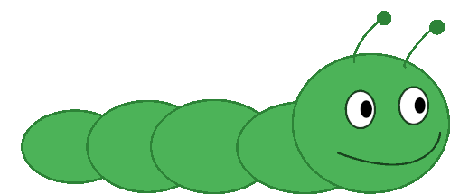 A cute green cartoon caterpillar with antennae and a friendly smile blinks its eyes.