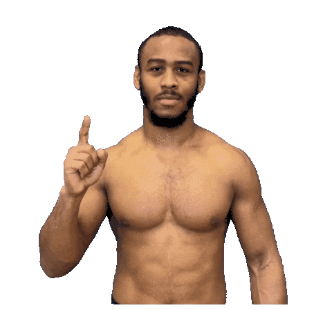 Mathis Duragrin, a shirtless fighter from Osa Old School Academy, points his finger up.