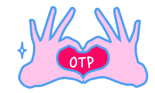 Pink hands form a heart shape with 'OTP' (One True Pairing) written inside, expressing love and affection for a favorite couple.