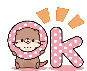 A cute brown otter holds up the letters "OK" with a happy, smiling expression, conveying a positive message.