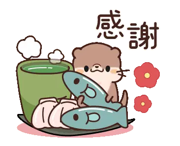 A cheerful cartoon otter floats on its back, happily holding a white object in its paws.