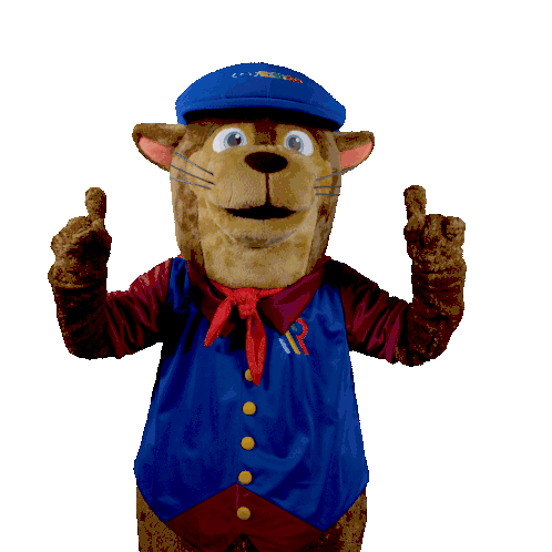 Otto, the Rotterdam mascot, points both index fingers up in an animated sticker.