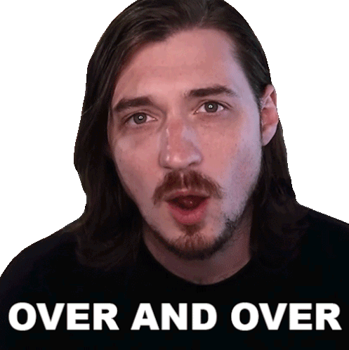 Aaron Brown, known as Bionicpig, repeats 'Over And Over' with a serious expression, emphasizing repetition.