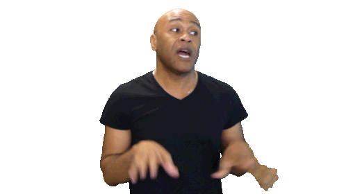 Robert E Blackmon gestures with hands up, expressing 'I'm Over It' or 'Boy Bye' with an exasperated look.