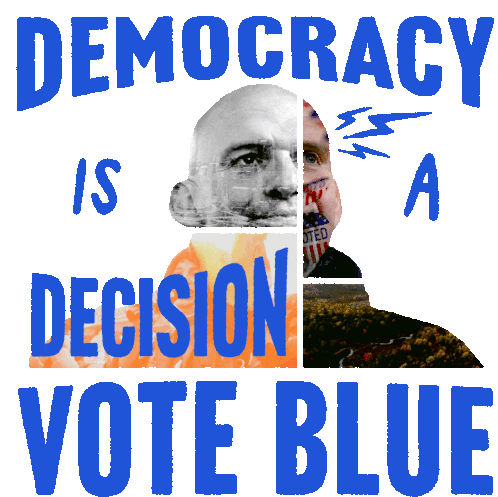John Fetterman sticker for the Pa Election, featuring the powerful message "Democracy Is A Decision Vote Blue."