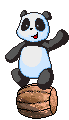 The character Panda Barrel flexes its arm, showing strength and determination with small sparks.