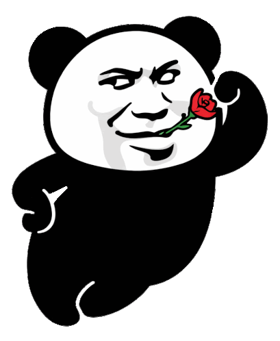 a panda bear is holding a red rose in his mouth