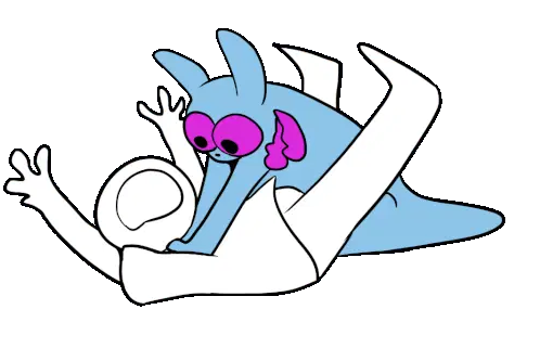 An animated doodle of Pansear Lady, a character from the Rain World universe, featuring her playful expression and unique design.