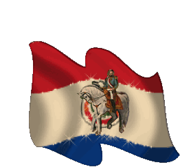 A vibrant animated sticker of the historical Paraguayan flag, featuring the iconic Mariscal Inmortal on horseback, waving proudly.