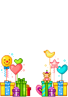 Charles celebrates with a festive array of party balloons, colorful gifts, and a cute teddy bear, creating a joyful atmosphere.