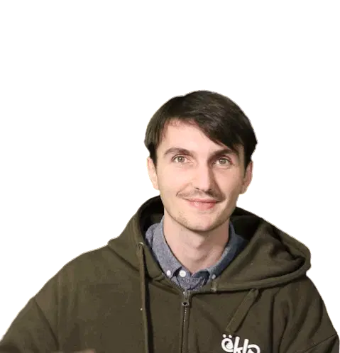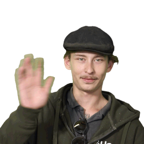Pascal Winken waves hello with a friendly smile, wearing a black flat cap and a dark hoodie over a collared shirt.