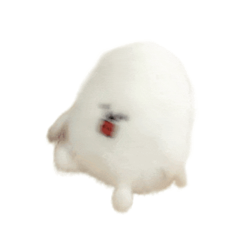 A cute, white blob character with a red mouth and angry eyes shakes its head, expressing passive aggression in a silly way.