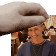Jack Manifold smiles as a hand gently pats his head. A playful and affectionate animated sticker.