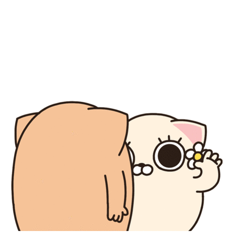 A cream-colored cartoon cat peeks from behind another cat, its calm expression quickly turning into an angry face.