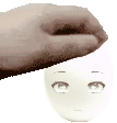 An animated sticker featuring a hand gently patting a white, round face, causing it to react with subtle movements and expressions.