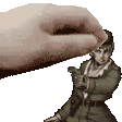 a hand is holding a small figurine of a man in a suit .
