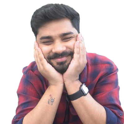 a man with a tattoo on his wrist has his hands on his face and smiles