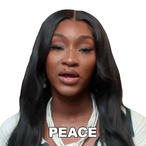 Danielle Miller from Basketball Wives closes her eyes and says 'Peace' in a cool, calm gesture.