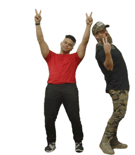 Joe Ragosta and Ya Boyz members pose with peace signs, one with arms raised and the other leaning back, showing a cool vibe.