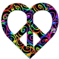 A vibrant heart-shaped peace sign filled with colorful musical notes and swirling patterns, perfect for music lovers.
