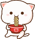 Peach Cat adorably slurps ramen noodles from a red bowl, showcasing its love for a delicious meal.