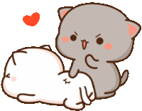 Peach and Goma, the adorable cartoon cats, engage in a playful spank, with a red heart floating above them, showing their mischievous affection.
