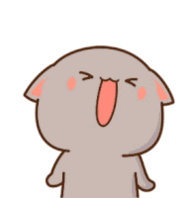 Cute animated sticker of Peach Goma, the adorable grey cat, happily laughing with a wide open mouth and rosy cheeks.