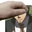 Animated sticker featuring Tohru Adachi with a hand covering his face, depicting a pegging theme.