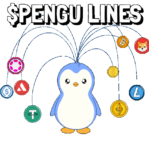 an illustration of a penguin surrounded by coins and the words " $pengu lines "