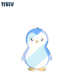 Pengu, the adorable blue penguin, happily jumps with arms outstretched, radiating joy and cheer.