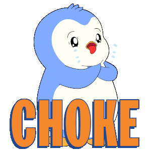 Pengu Pudgy penguin struggling to breathe, with the word 'CHOKE' displayed, indicating an emergency.
