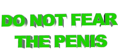 An animated sticker featuring the bold green 3D text 'DO NOT FEAR THE PENIS' rotating and moving on a white background.