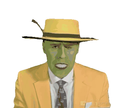 The iconic character The Mask in a yellow suit, making a thinking gesture with a pensive expression, conveying 'Pensando Ti'.