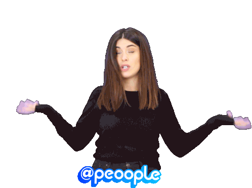 a woman in a black sweater is standing in front of a white background that says @peopple