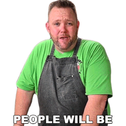Matthew Hussey, wearing an apron and green shirt, enthusiastically declares 'People will be thrilled' with a confident expression.