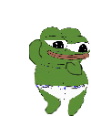 Pepe The Frog, the iconic internet meme, dances energetically while wearing a white diaper.