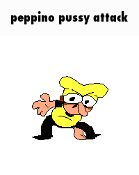 Peppino from Pizza Tower runs energetically with the text 'peppino pussy attack' displayed above him.