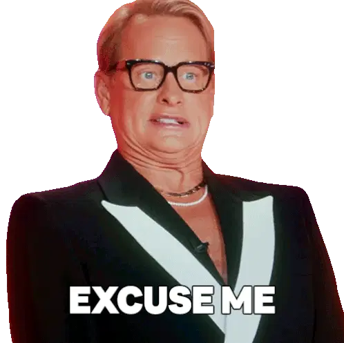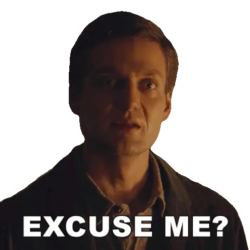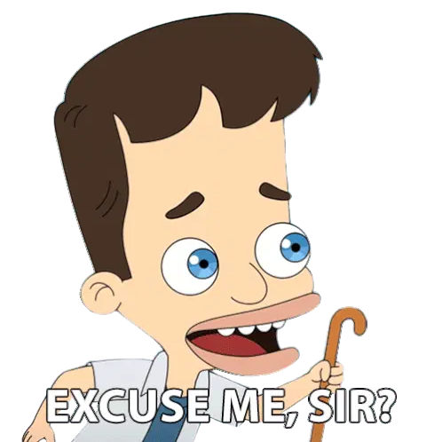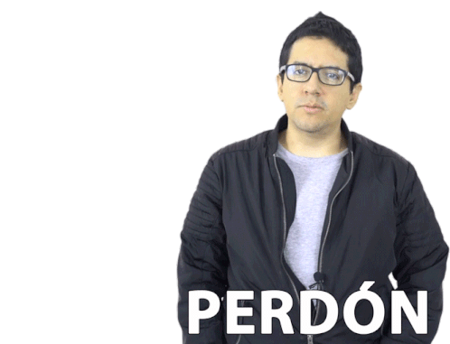 A man with glasses says 'Perdon' (Sorry), expressing apology or regret with a thoughtful expression.