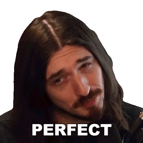 Bionicpig, a man with long hair and a beard, looks on with a subtle smile as the word "Perfect" appears.