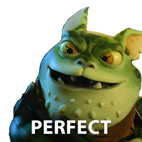 Bogdog from My Dad the Bounty Hunter gives a satisfied look, indicating approval with the word "PERFECT".