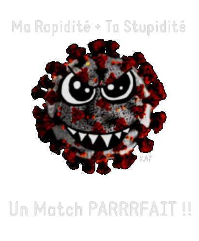 A menacing cartoon virus with text 'My Speed + Your Stupidity, A PERFECT Match!!' symbolizing the pandemic's spread.