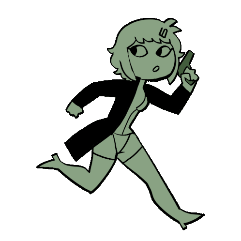 Anime character Marie from Peripeteia runs with a gun, depicted in a dynamic, stylized animation.