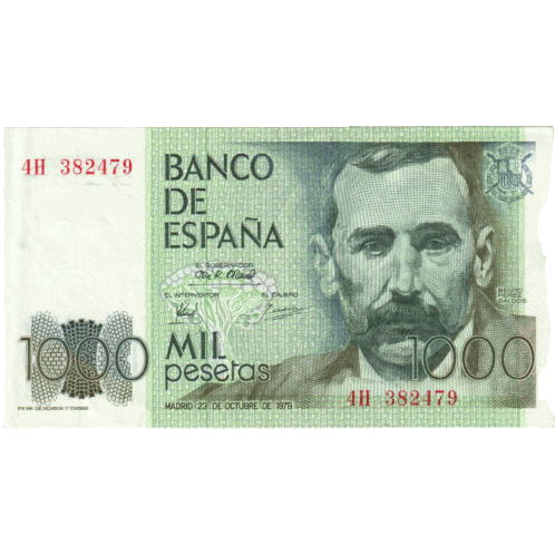 a banco de espana 1000 mil pesetas bill with a man 's face on it