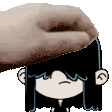 An animated sticker featuring Lucy Loud from The Loud House, with a hand gently petting her head.
