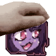 A pixel art animation of a hand gently petting a purple cartoon character's face, creating a 'pet pet' or 'pat pat' motion.