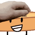 English Muffin, the adorable cartoon character, happily gets pet on the head while wearing a towel, smiling sweetly.