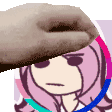 A gentle hand lovingly pets the head of the adorable cartoon character, Sara, in this sweet animated sticker.