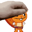 a cartoon character wearing a hat and boots is being touched by a person .